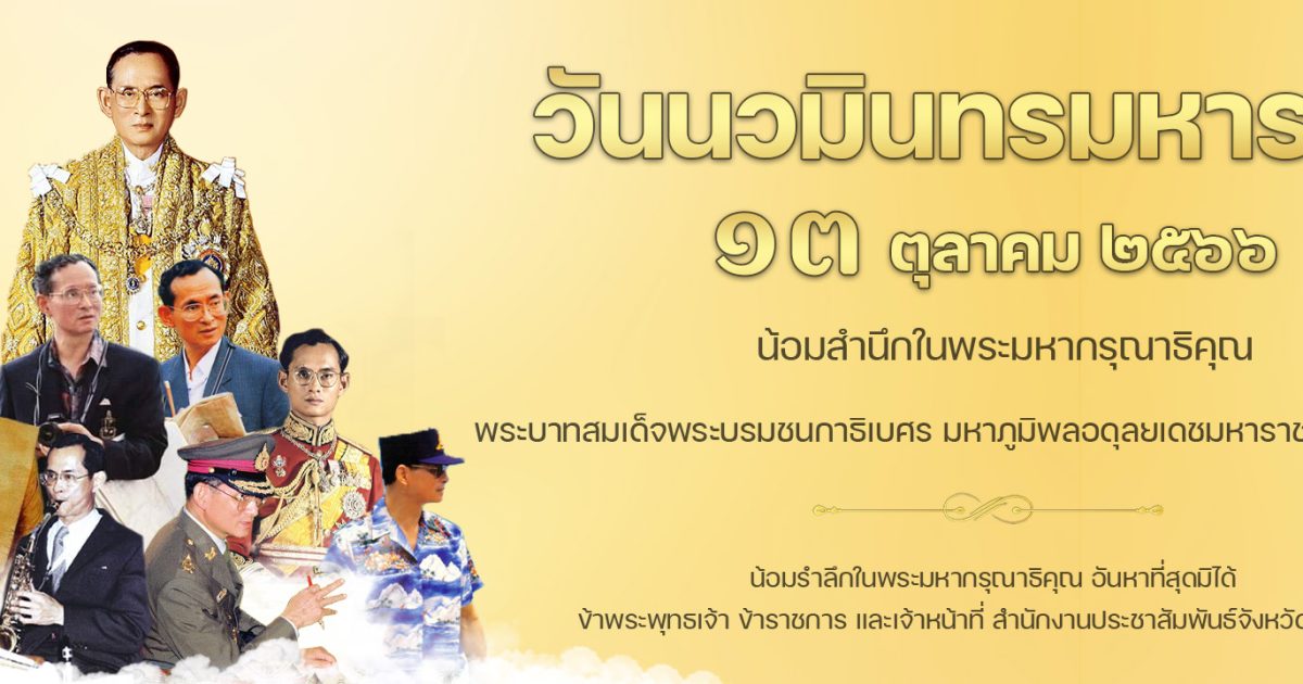 เนื่องในวันคล้ายวันสวรรคต พระบาทสมเด็จพระบรมชนกาธิเบศร มหาภูมิพลอดุลยเดชมหาราช บรมนาถบพิตร วันที่ 13 ตุลาคม 2566 “วันนวมินทรมหาราช” สำนักพระราชวัง เปิดให้หน่วยงานภาครัฐ ภาคเอกชน องค์กร และประชาชน มาวางพวงมาลา และเดินทางมาถวายราชสักการะ เพื่อน้อมรำลึกในพระมหากรุณาธิคุณ ที่พระบรมราชานุสาวรีย์ พระบาทสมเด็จพระบรมชนกาธิเบศร มหาภูมิพลอดุลยเดชมหาราช บรมนาถบพิตร อุทยานเฉลิมพระเกียรติ สนามม้านางเลิ้ง เขตดุสิต กรุงเทพมหานคร