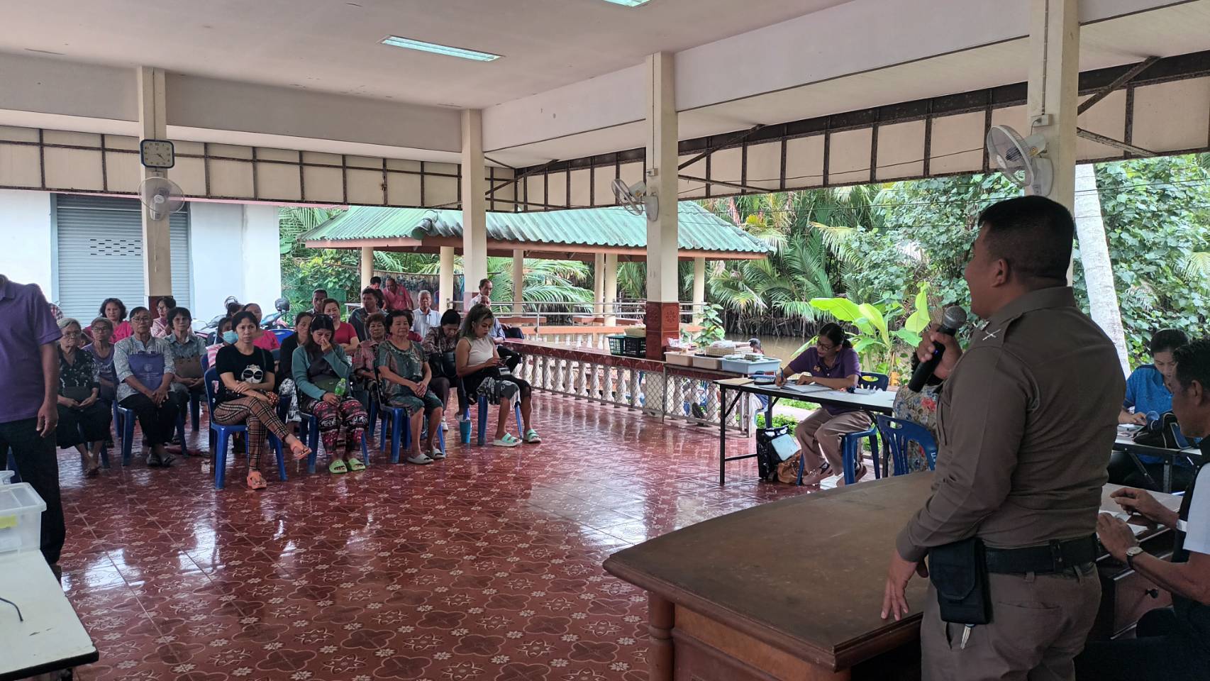 ชุด ชมส.สภ.เมืองสุราษฎร์ธานี เข้าร่วมประชุมหมู่บ้านประจำเดือนบ้านบางไผ่ ม.4 เพื่อแสวงหาความร่วมมือ รับทราบปัญหาที่เกิดขึ้นและร่วมมือในการแก้ไขปัญหายาเสพติดให้กับชุมชน