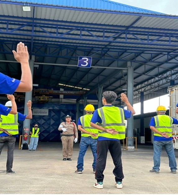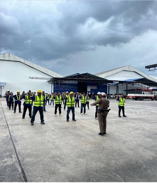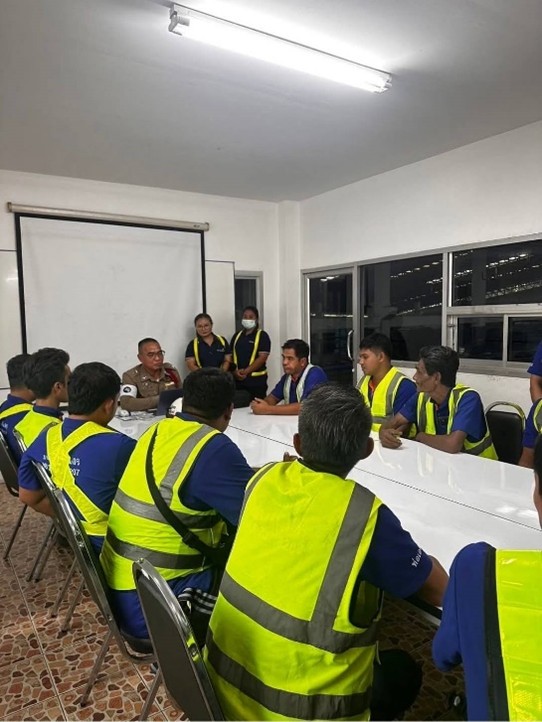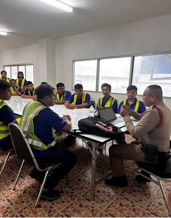 วิทยากรบรรยายให้ความรู้เกี่ยวกับการขับขี่ปลอดภัยฯ ให้แก้พนักงานขับรถของ บริษัท พีเค ต.บางกุ้งฯ