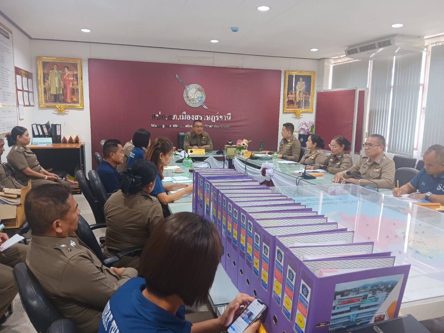 พร้อมข้าราชการตำรวจ เข้าร่วมรับการตรวจสอบฯ ณ ห้องประชุม ศปก.สภ.เมืองสุราษฎร์ธานี