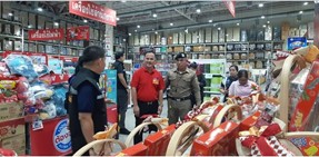 สภ.เมืองสุราษฎร์ธานี ร่วมกับ สคบ.ออกตรวจสอบราคากระเช้าของขวัญปีใหม่ ตามศูนย์การค้าต่าง ๆ ในพื้นยที่รับผิดชอบ