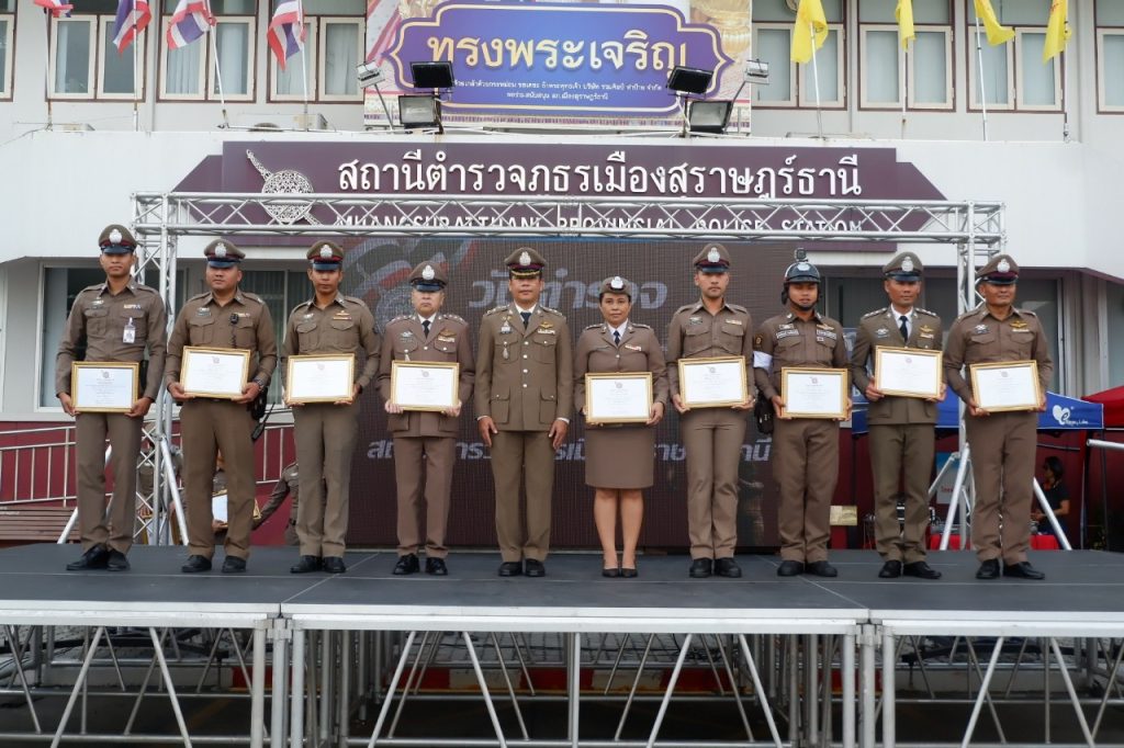 สถานีตำรวจภูธรเมืองสุราษฎร์ธานี มีการมอบประกาศเกียรติบัตรแก่ข้าราชการตำรวจที่ปฏบิติงานดีเด่น ในแต่ละสายงาน ในวันตำรวจของทุกปี