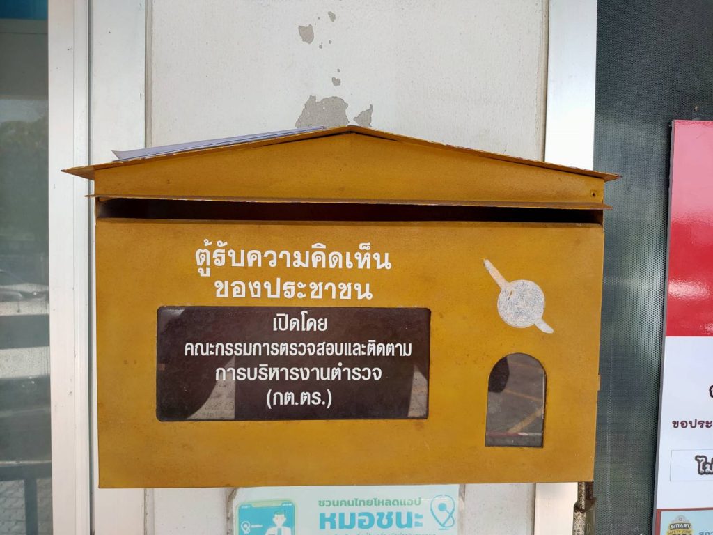ตู้แสดงความคิดเห็นตั้งอยู่บริเวณหน้า สถานีตำรวจภูธรเมืองสุราษฎร์ธานี